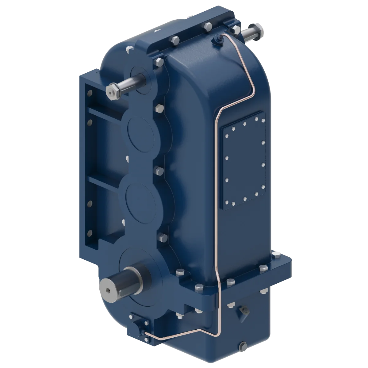 Трехступенчатый цилиндрический вертикальный крановый редуктор ВК-550 предназначен для увеличения крутящего момента и снижения частоты вращения в оборудовании средней мощности. С массой 279 кг, данный редуктор используется в приводных механизмах передвижения таких машин, как мостовые и опорные краны. Он особенно эффективен в условиях вращательно-кратковременных нагрузок и подходит для промышленного оборудования, где важна высокая надежность.
